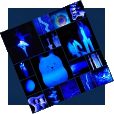 I chose photos from several years of light installations in Mannheim’s large Luisenpark for Värikollaasit #465 for a deep blue collage.