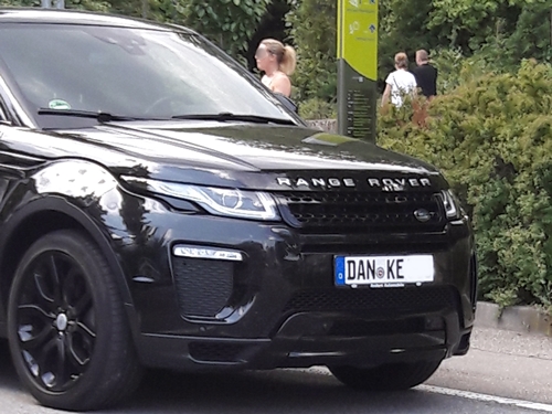 I don’t know what he is appreciative about – having a bigger car than most, possibly? (The first three letters signify that the car is from the area around Dannenberg in Niedersachsen, and the words spell “thank you”.)