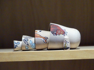 A friend of mine who knew that I liked the Gruffalo gifted me these nesting dolls: the mouse inside the snake, the snake inside the owl, the owl inside the fox, the fox inside the Gruffalo. This did not diminish the mouse’s chance against the others.