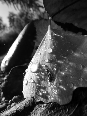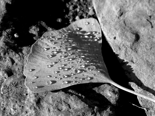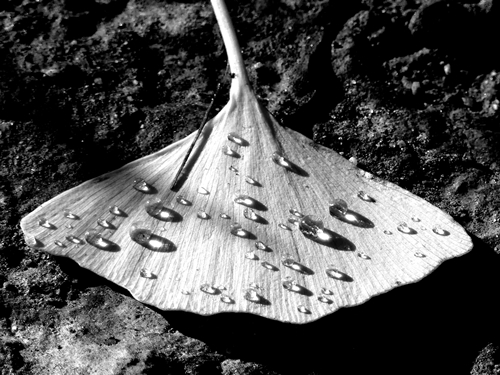 Thank you. The dewdrops had collected only on the ginkgo leaves, nowhere else.