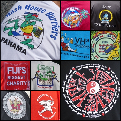 You see symbols here from Hashes from Nittany Valley, Shanghai, Silicone Valley, Fiji, Panama, Vindibona (aka: Vienna), Cambridge, Panama, Borobudur, Saudi Arabia (Jeddah, Al Khobar, Rastanura and Jubail), Frankfurt, Beijing, and Kuala Lumpur (the Mother Hash where the first Hash run took place in 1938) – please, stop me!