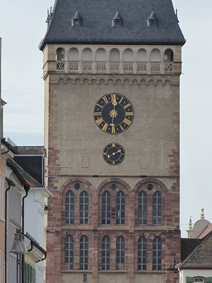 This is the Altpörtel, a remaining town wall gate of the imperial town of Speyer. The Christmas market leads from the cathedral to this tower.