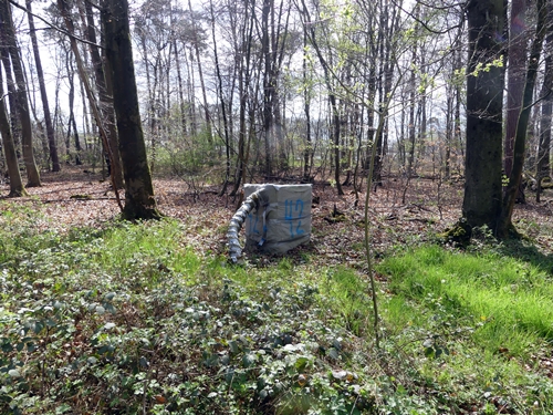 I came upon this mystery scene in the forest. Riddle me this. What is in that mysterious parcel? Is it a wrapped up baby elephant? Is it a household appliance (a hood extractor? a clothes dryer?) abandoned in the woods? Is it a ventilator aerating a hole in the ground? If so, is there a prisoner? Does the enigmatic number 42 point to an alien presence or at least give me the answer I am looking for? Will I need a towel?