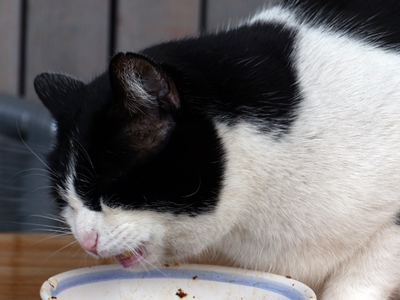 It was the neighbour’s cat, Johnny. He beats up Henry every now and again, so he deserves everything he gets. 😼 No, I’m not that mean, really. I just happened to take pictures of him eating when he reversed the process.