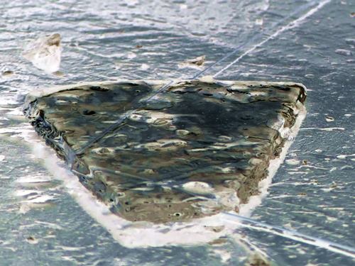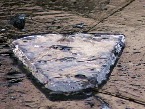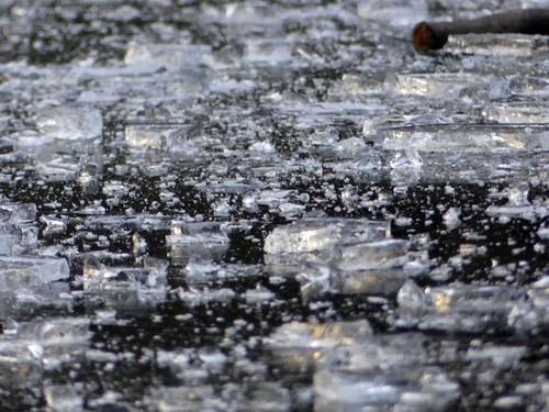 It seems like a lot of children have cracked the ice with branches and thrown pieces of ice on the more solid parts.