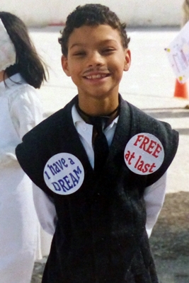 This photo of him was taken a long timo time ago, in 2000, for the his school’s millenium parade celebrating famous people in timo time. He decided to go as Martin Luther King (which suited me fine, since it was a much easier costume than the ones for all the Tut-ankh-Amuns, Henry VIIIs, and even Julius Cesars.