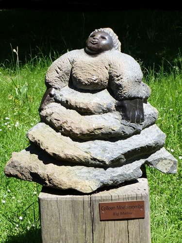 This sculpture is an example of Shona stone art, it stands in the Heidelberg Zoo. The artist is Colleen Madombe, born in Zimbabwe who lived in the capital Harare. She was internationally acclaimed and died, only 45-years-old, in 2009 in Harare.