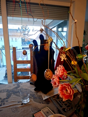 A messy photo, no time to arrange the shot or the light or anything. Just catching Henry and his Easter fun before I had to rescue the flower/egg arrangement.