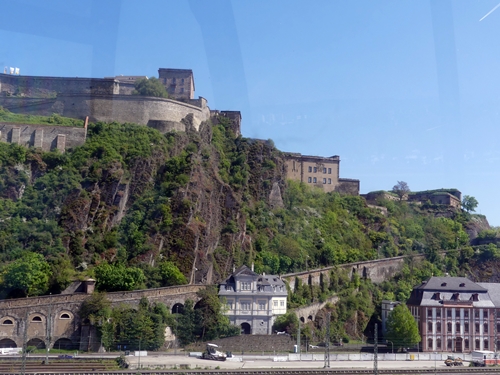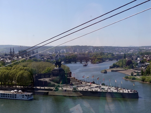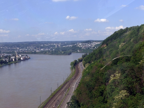 The photos were taken from the cable car that crosses the Rhine from this point to the Ehrenbreitstein Fortress on a flat hill opposite overlooking the town of Koblenz.