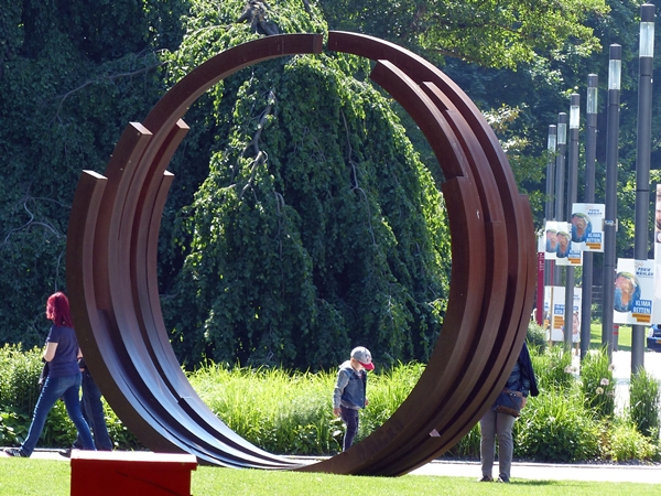 Some of these are in parks, some in the front of large buildings, others are almost dumped unceremoniously in a corner of a free space between two roads. None are really the center of attention. All are non-representational.