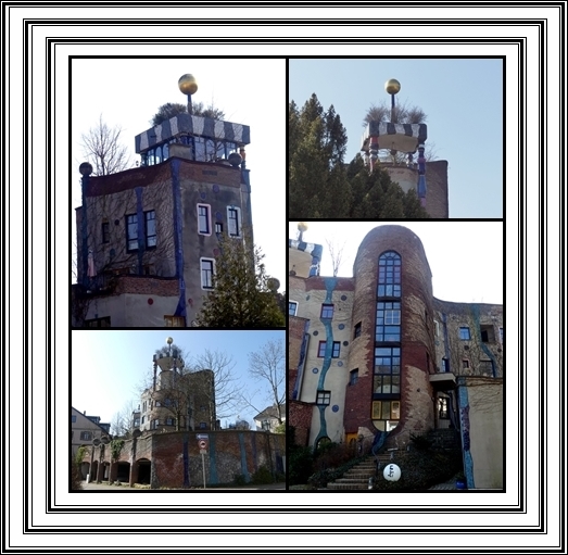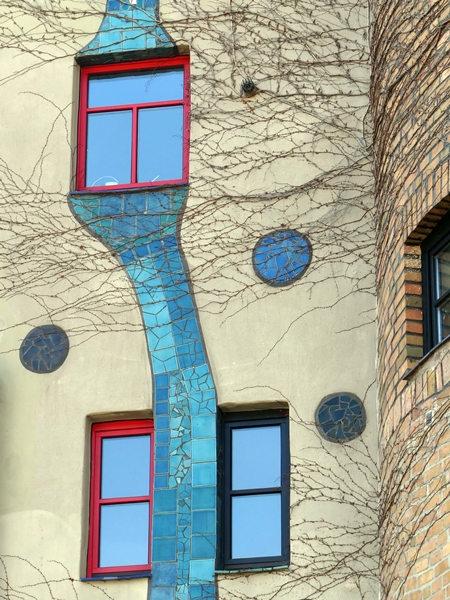 Friedensreich Hundertwasser was an Austrian artist and architect who had a very distinctive and easily recognisable style. One of the houses he designed is in Bad Soden am Taunus, west of Frankfurt, and it’s called “In the Meadows”. Although he stated that straight lines are “godless and immoral” many of the windows are straight, they certainly are here. Anything else would be too expensive I think.