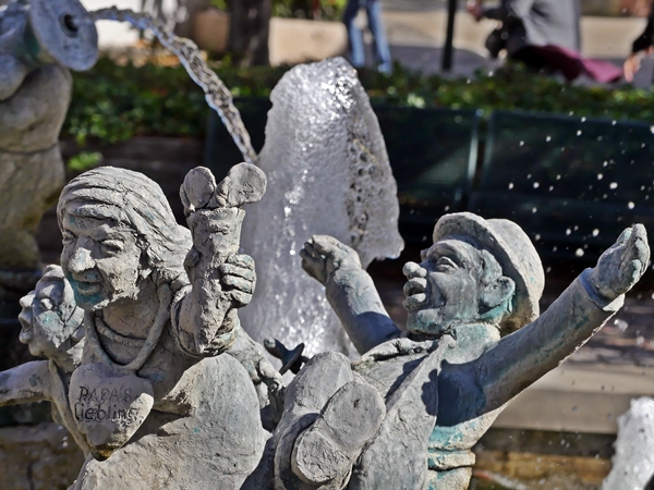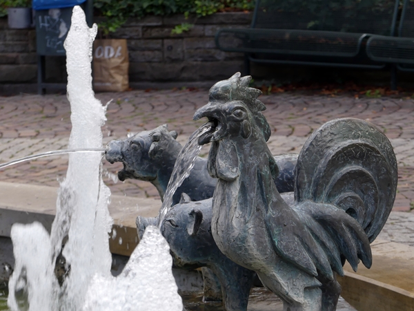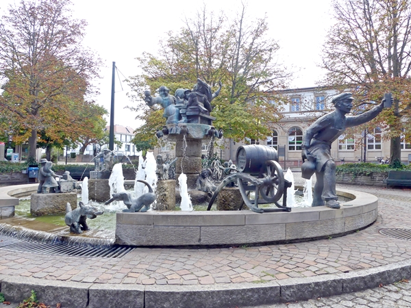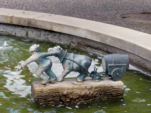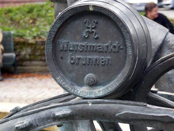 The sculpture is part of the Wurstmarkt fountain in the square in front of the Bad Dürkheim station.