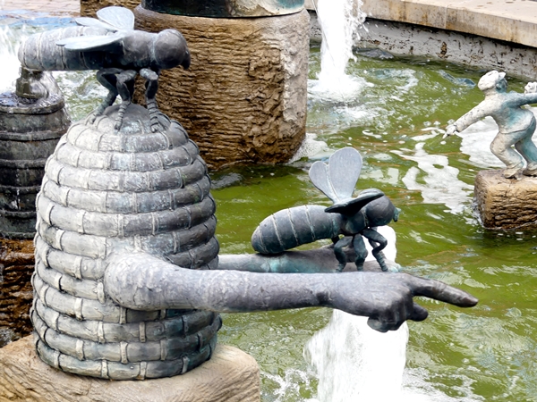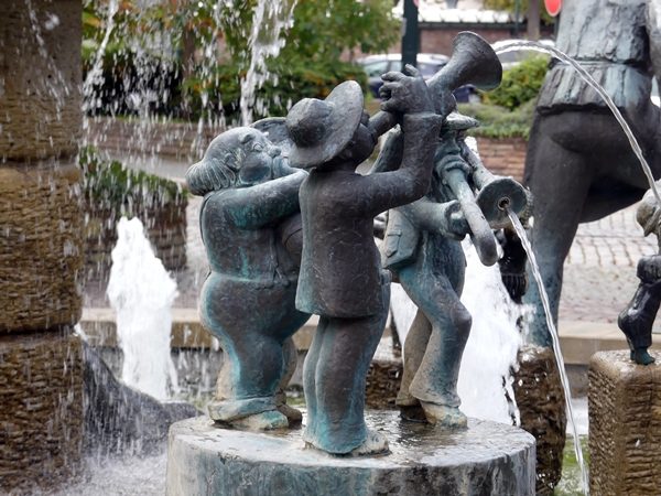 Most visitors to the fest arrive by train or tram and the first thing they see when they arrive is the Wurstmarkt fountain.
