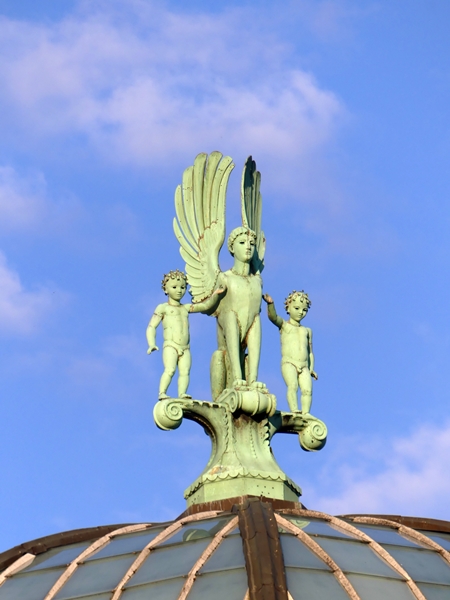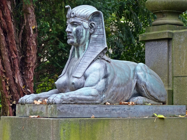 Sphinxes seem to be drawn to museums. This Art Nouveau specimen crowns the cupola of the Wiesbaden museum together with two non-sphinx companions.