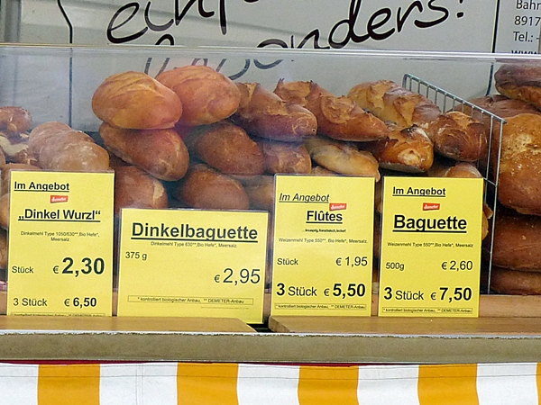 On rye or white? In Germany, even the street vendors offer more choices: Chiabatta, wild garlic ciabatta, onion bread, olive bread, Turkish pide, dark spelt flour bread, flûte, baguette, sweet yeast bread made with spelt flour with or without raisins, – that’s in addition to the standard wholewheat or white bread, rye bread made with sourdough. So, how would you like your sandwich?