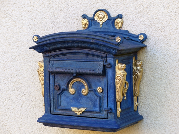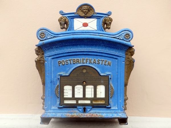 Jude has posted about British postboxes in what we would call “fire station red”. German postboxes are typically yellow but evidently that was not always the case. I found these blue ones in Michelstadt and in Schwetzingen respectively, both date back to the late 19th century. The one in Michelstadt is still in use but I don’t know about the one from Schwetzingen. Both date back to the late 19th century.