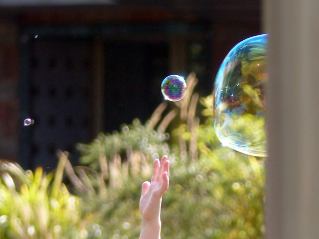 Linked to the On the Hunt for Joy Challenge: Blowing bubbles.