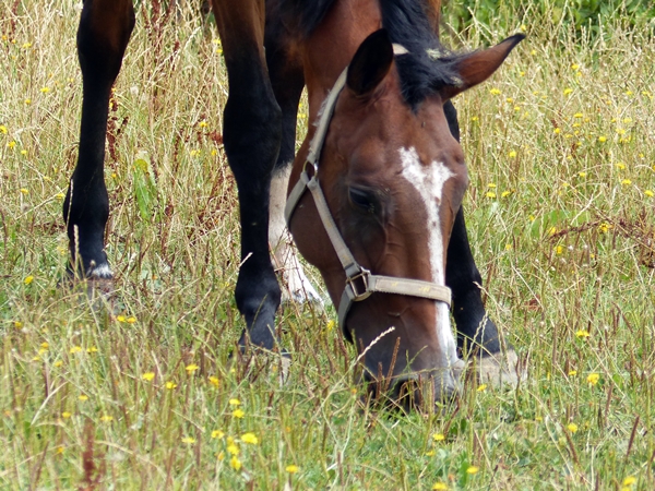 Flowery buffet. Equine enjoyment.