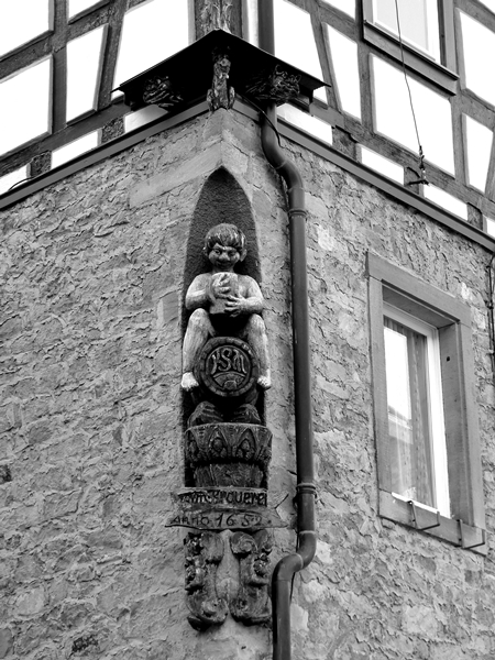 This is the gallows of Beerfelden, the largest and best preserved gallows in Germany. It was erected in 1597 (on the same spot was a wooden gallows before), supposed to be broken down in 1788 (except that nobody seems to have gotten the order of emperor Joseph II of Austria), and the last execution is supposed to have taken place in 1804, a woman was hanged for allegedly stealing a chicken and two loaves of bread (although this is not verified). It’s in a beautiful spot and commands a spectacular view of the surrounding landscape – although in this bleak light and with the clouds one wouldn’t think so.
