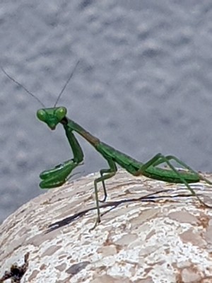 Fred is the littliest praying mantis I’ve ever met. Nevertheless, he has a great personality, hanging out in front of our holiday cabin and greeting us in the morning. I hope he will be cherished by the people moving in the cabin after us. And that he will continue to avoid matrimonial bliss for a long time.