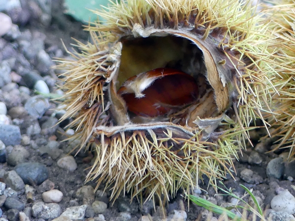 Most chestnuts are still up in the trees, in their light-green prickly shell but some have already fallen and the smooth, auburn coloured chestnuts are lying on the ground. One of my favourite signs that autumn is here.
