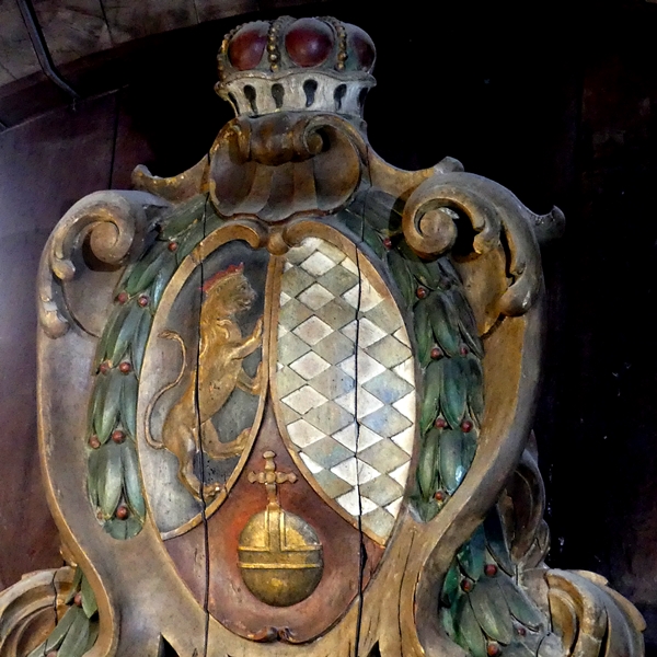 What a lozenge is in heraldry is a diamond or a rhomb in geometry. This crest is on top of a large vat in the Heidelberg castle – although not THE large vat in the castle but big enough (more than 5m tall, judging by … Continue reading Not a Sore Throat