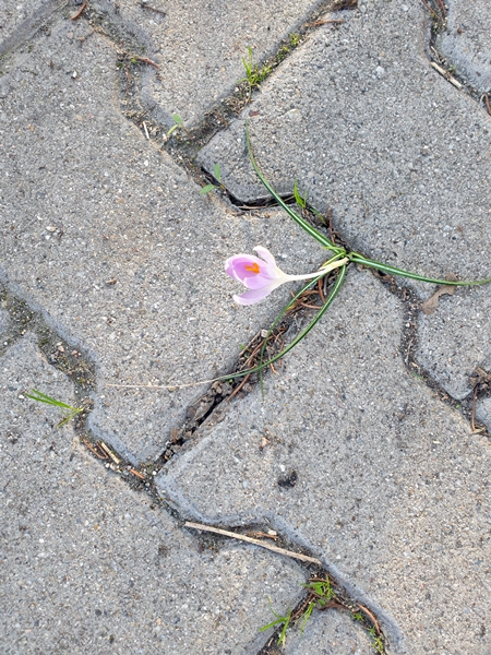 was enough for this little crocus. I’ve seen weeds growing through cracks. I’ve seen dandelions growing through cracks. Anything propagated through seeds. But I’ve never seen a crocus do that. The bad news is that the intrepid little crocus is not doing too well. Cellpic … Continue reading A Crack in the Pavement