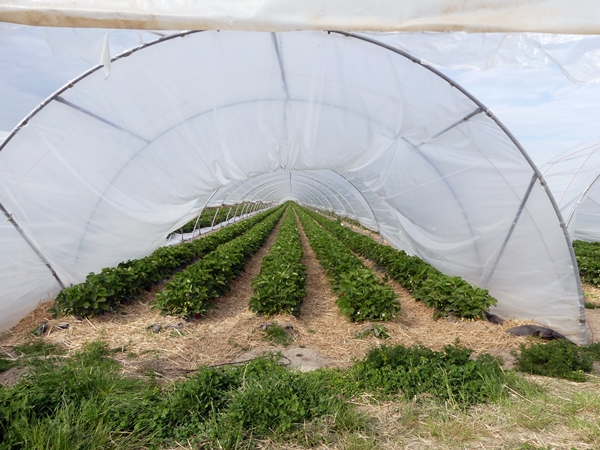 Strawberry fields under cover and grain in the open. Geometric Square #12