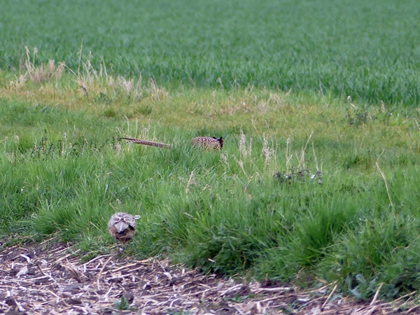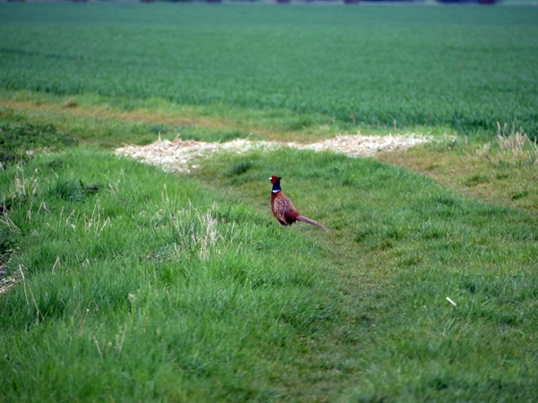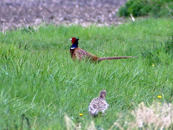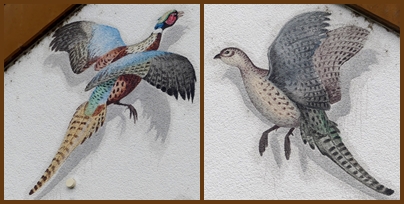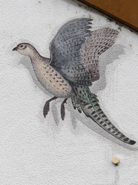 For a long time the only pheasants I came across were painted ones like these on the gable of a local hotel.