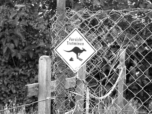 And because she is Australian I had to add this fence and sign with an Australian flavour. I don’t know what the poor roo did to deserve its place on a sign that warns of “landmines” (a name for doggy poo that can only be considered funny in a land where actual landmines haven’t been seen in a long time).