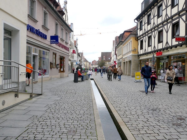 The pedestrian high street of Forchheim has an artificial streamlet running through it. A joy for children at all times, a bane for parents on cold days. Bächla is stream in the local dialect.