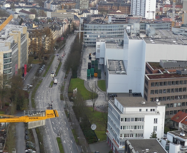 Frankfurt suburb Sachsenhausen as seen from the 22nd floor of the hotel we were staying over the weekend – at 10 pm and at 10 am the next morning.