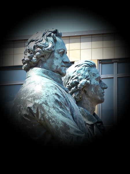 Because Aino asked here is a bit of information about the statues beyond the names in the tags:From left to right: Friedrich Schiller is one oft the two national poets of Germany, like Johann Wolfgang von Goethe, he lived in the 2nd half of the 18th century. Großherzog Ludwig IV. was a local regent in Hessen in the 19th century. Jran-Baptiste Kléber was the most important general of Napoleon Bonaparte, hailing from the Alsace. The severed head is an allogorical figure from the works of Friedrich Rückert, another German author, same era as Goethe and Schiller. And Großherzog Ludewig I. was an ancestor to the other “Louis” in this collage. The names are mentioned in the tags.