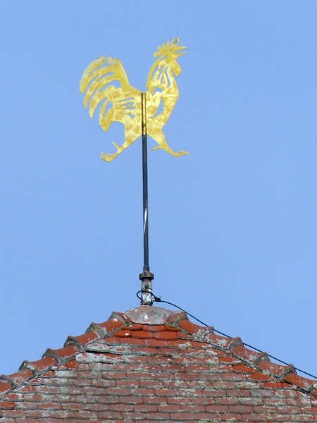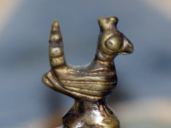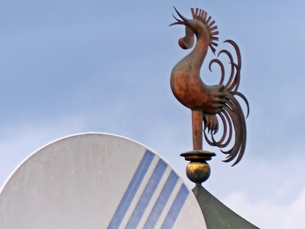 A moorhen has escaped from its golden cage, it seems.
