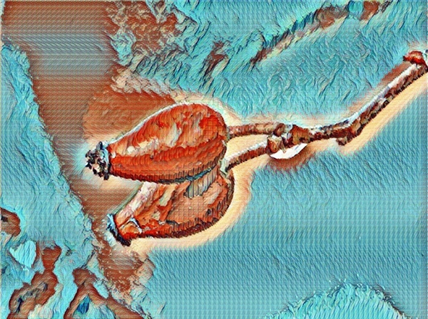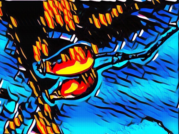 A cross stitch and versions in the manner of Escher, van Gogh, Kandinsky, Graffiti, Picasso, Kalo, da Vinci, Gauguin, and the original – with the help of LunaPic photo editor.