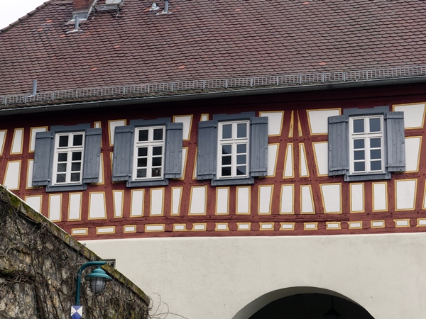 Both these houses are from Michelstadt im Odenwald. I was fascinated by the different kind of windows, all coming together to one style, sort of.