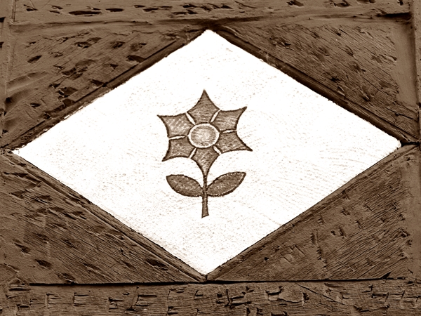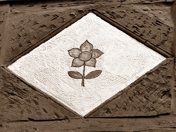 You don’t know the half of it! The town hall of Lorsch, about 60 km south of Frankfurt. A half timbered house in the Odenwald. A half timbered house with carvings and geraniums in Frankonia. Geometric Square #28