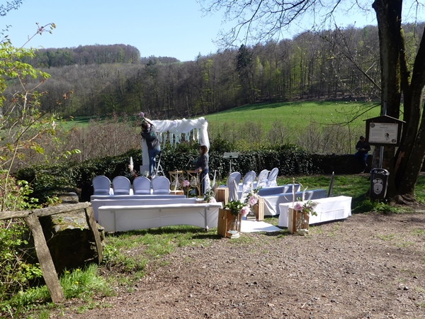 On an outing this weekend we came upon this charming scene, two decorators preparing a glade for a wedding.