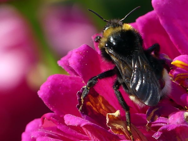 Attention on the flower with bee and attention of the (huge) buff-tailed bumble bee.