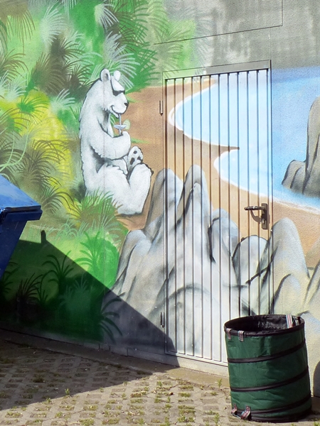 These murals in Lindenfels are badly faded, I enhanced them with photo shop. The left picture depicts the traditional costume of Lindenfels in the Odenwald; the right picture shows young women from Moëlan sur Mer in traditional Breton costume. The two towns are twinned.