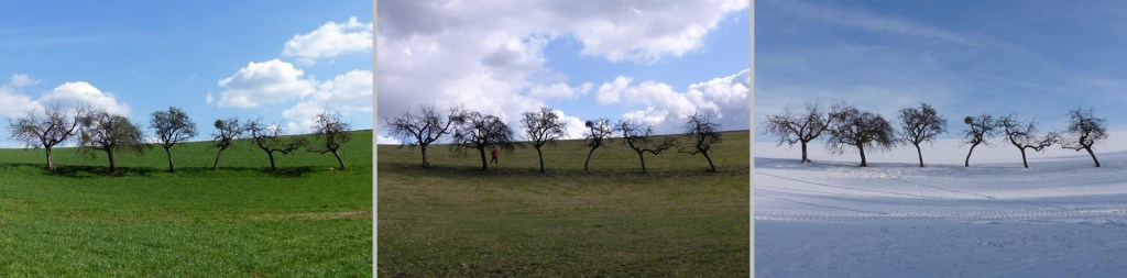 I’ve never yet managed to catch those apple trees in bloom; I’m worried that since they are so ancient that I will never do. So there are only three seasons on display.