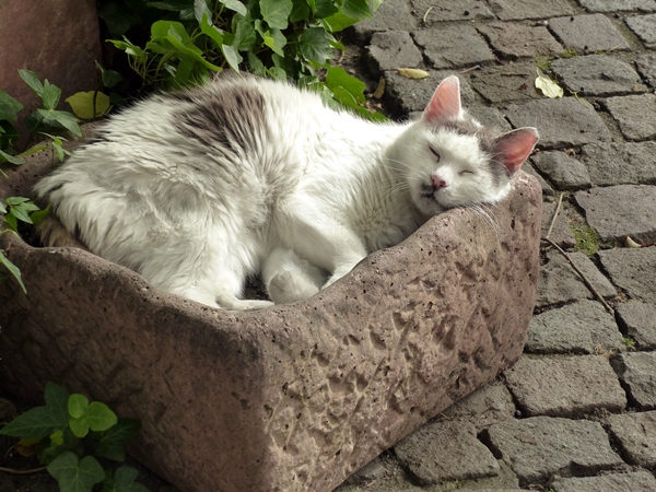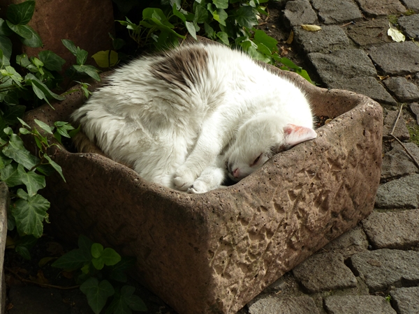 I’ve shared a photo of this “potted cat” before. It had settled down in this old stone flower pot, next to the walk way on a busy street, completely relaxed and not bothered about the surrounding commotion.