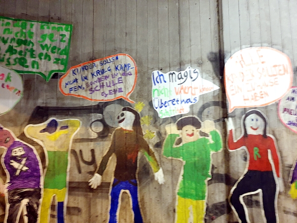 This mural was created by a school class with many refugee students (hence the German is not perfect).