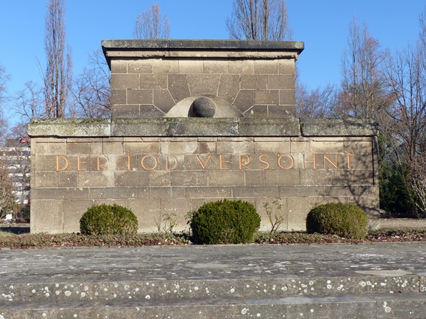In the main cemetery of Mannheim this monument seems to be an appeal to reconciliation, it is situated near the soldier’s section of the cemetery. Personally, I find it cynical that men who were enemies in war, who killed each other, can be reconciled in death by having their graves next to each other.