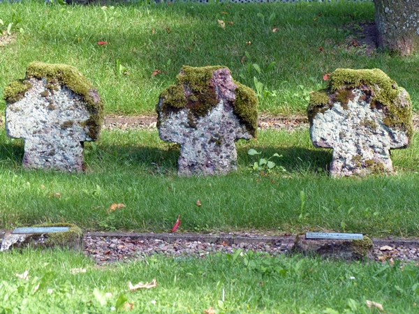 My last trio for today is from the war grave near Brandau in the Odenwald where soldiers and forced labourers (men, women, and children) are buried as a memorial against war. The crosses are overgrown with moss, showing the passage of time.