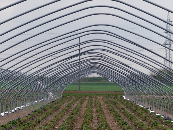 Obviously these honeycomb structures are some kind of greenhouse. I don’t know how they work since they are open on the ground and open to the top. I also don’t know for what kind of crop. The bad news is: it is a kind of synthetic material or plastic. The good news is: the material is usually rolled up when no longer needed and brought out again the year after.