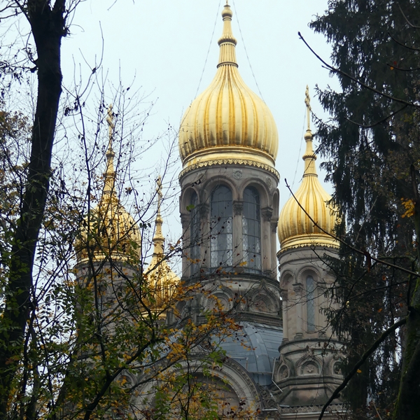 When you go walking on Wiesbaden’s Neroberg there is no way you’re going to miss the Orthodox Russian church. You are walking through the woods and suddenly you round a corner and you’re hit with a flash of gold!