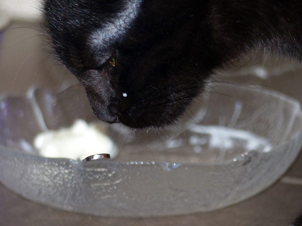 Henry gets special treats occasionally and he likes it just as much as the next cat. He wears his feelings on the cheek, so to speak.