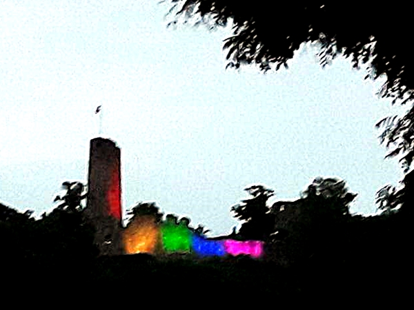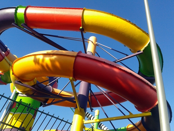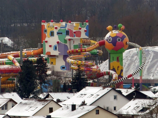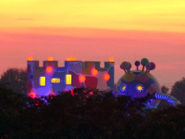 I don’t care that much for the water park in our town itself (from my earliest experiences working there as kitchen drudge to being forced on the bigger slides because the grandchildren weren’t allowed on their own yet due to age) but it makes for a colourful feature in the suburbs.