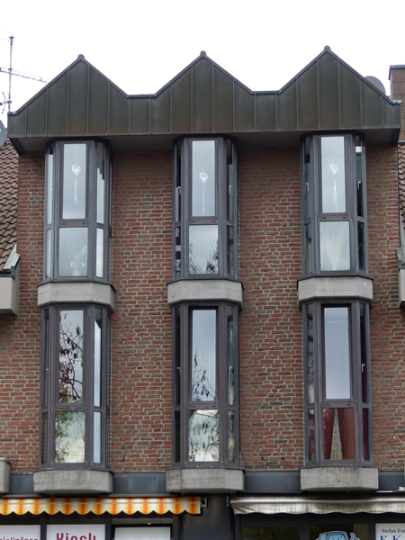 A mixed commercial and residential building with three sets of bay windows in Heinsberg.